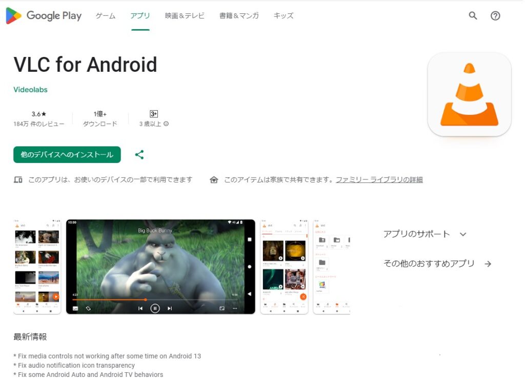 VLC Androidアプリケーションの更新と動画ファイルの準備